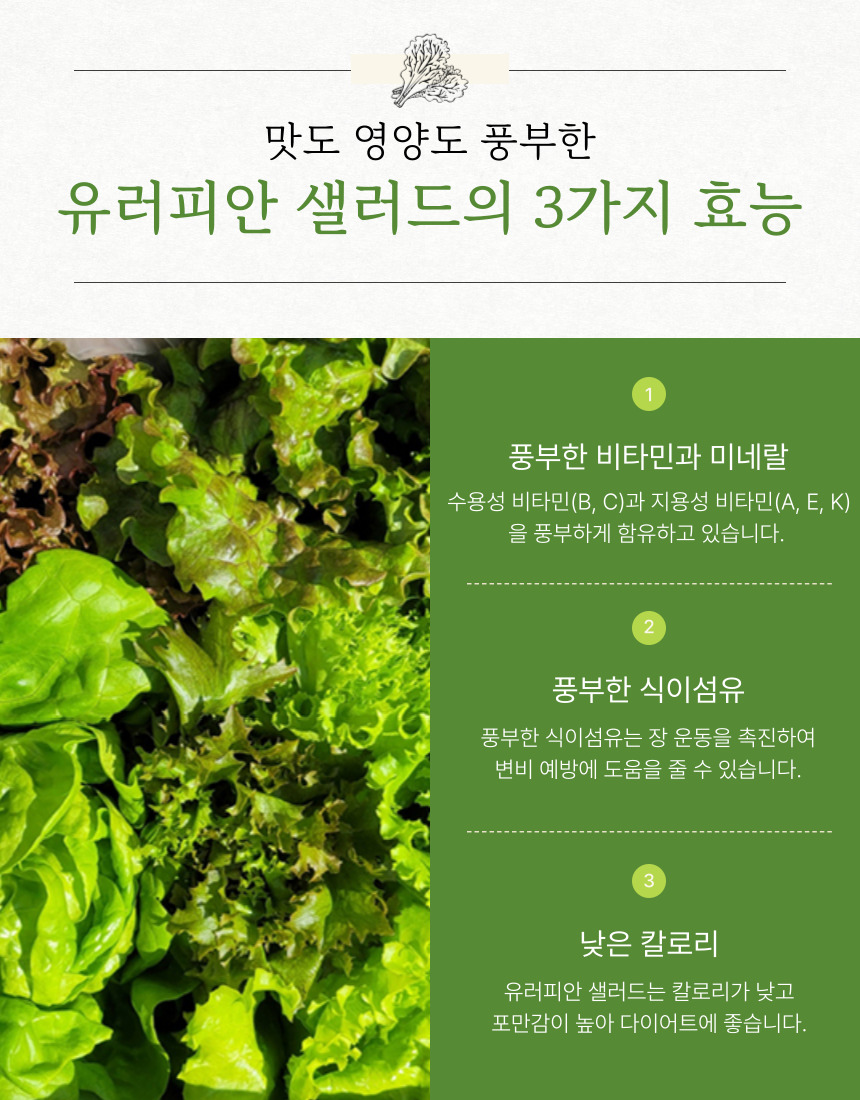 [더맛있는] GAP인증 무농약 유러피안 샐러드 (600g/1kg)