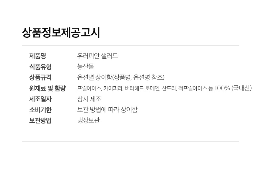 • 신선식품의 경우 재판매가 불가능한 제품 특성상 단순변심 및 개인적 입맛 차이로 인한 반품은 불가능하며 제품 수령 후 문제가 있는 경우 이상부분 사진 촬영하여 수령하신 날짜 기준 2일 이내 연락해주셔야합니다.(기일은 업체별 상이할 수 있으니 수령즉시 연락 부탁드리겠습니다.)