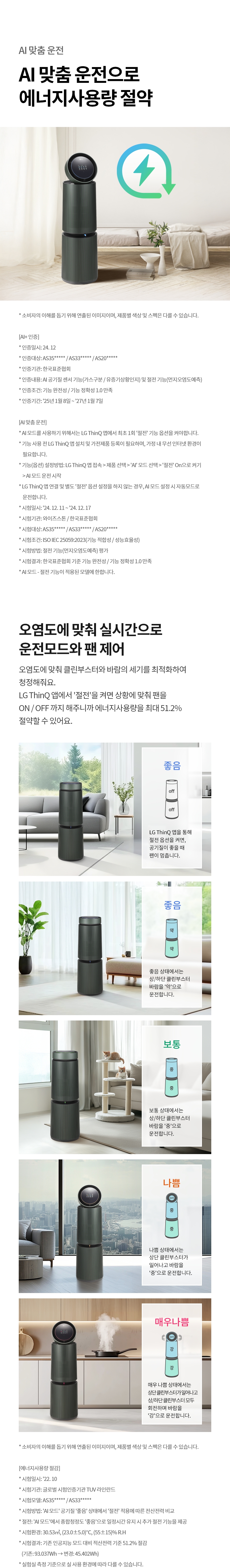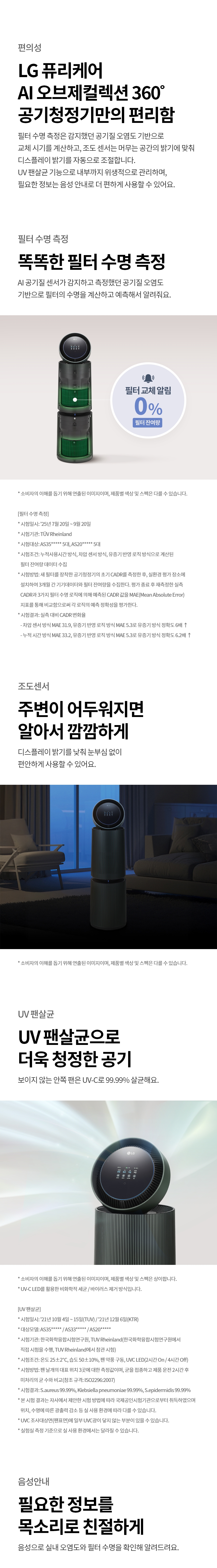 [LG전자] 퓨리케어 AI 오브제컬렉션 360 공기청정기 M7 2단 2등급 (AS356NGMA)